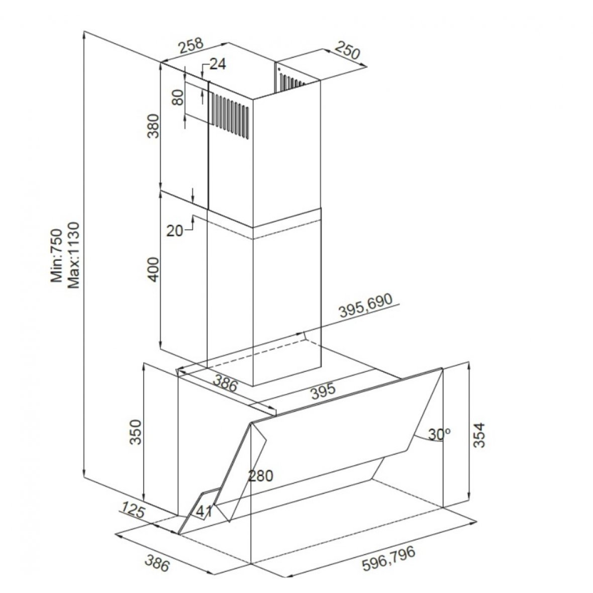 • Aftræksstuds Ø150 mm, mulighed for reduktion til Ø120 mm