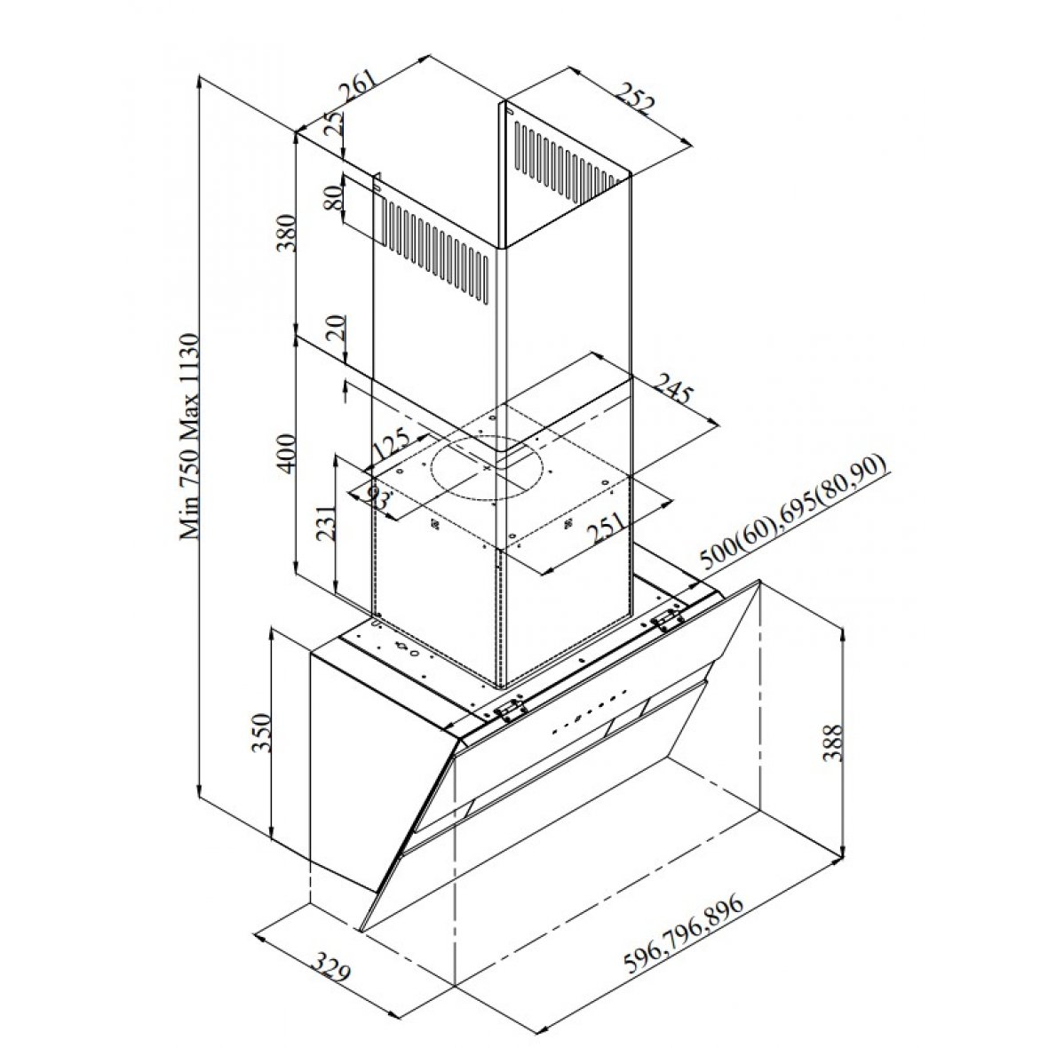 • Aftræksstuds Ø150 mm, mulighed for reduktion til Ø120 mm