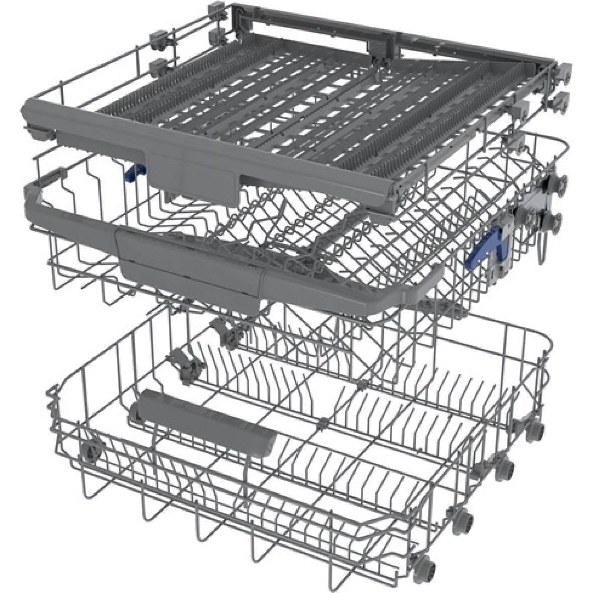 Med tre kurve giver denne opvaskemaskine fleksibilitet i forhold til at fylde forskellige typer opvask. Den justerbare højde på den øverste kurv gør det muligt at placere større genstande uden problemer.