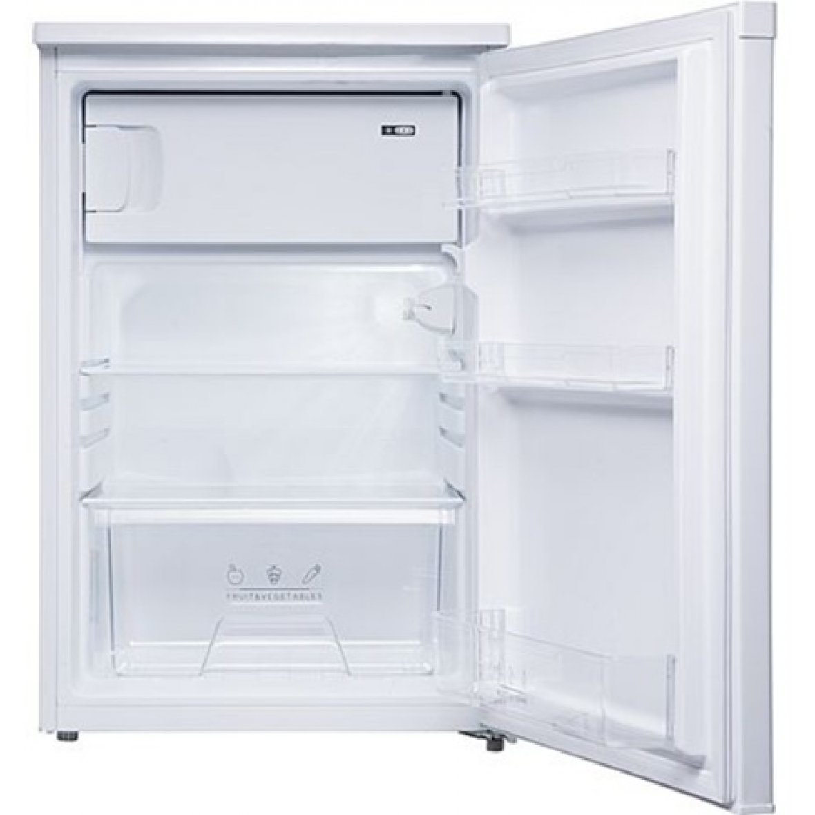 Fritstående Elvita køleskab med frostboks foroven. Det praktiske lille køleskab er 84,5 cm højt og 55,3 cm bred. Her får du 97 liter køl og 16 liter frys og køleskabet passer perfekt i den lille lejlighed og i sommerhuset.