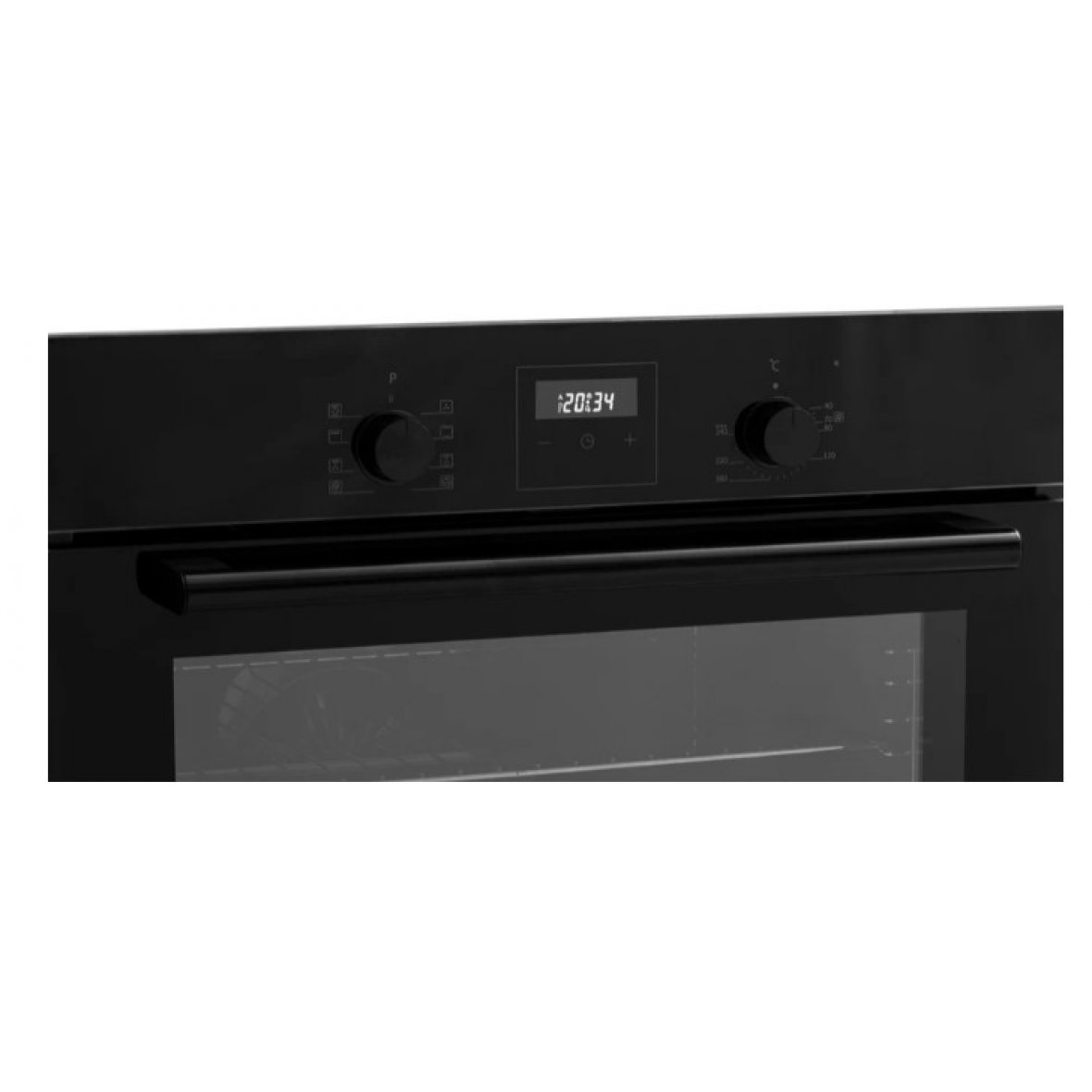 Flot sort indbygningsovn med 8 funktioner og damp selvrens. Til ovnen medfølger 2 bageplader, 1 rist og en dyb bradepande.