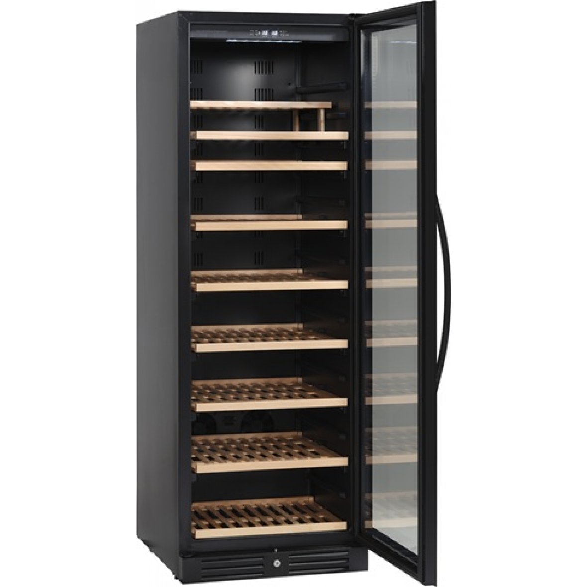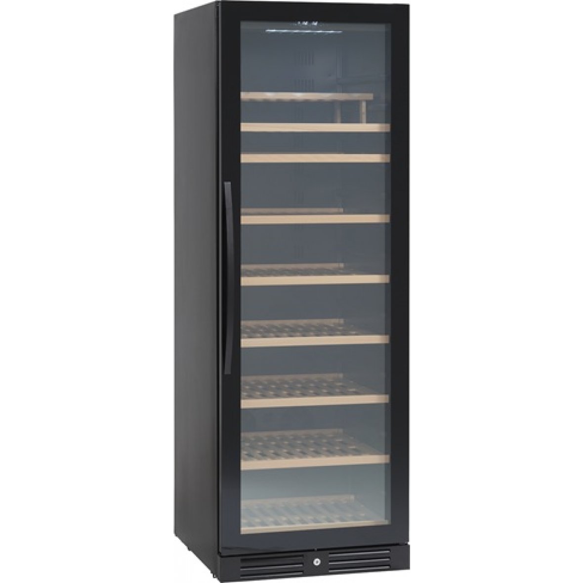 Flot, enkelt og elegant vinkøleskab, som kan bruges til både indbygning og som fritstående vinskab. Vinskabet har 1 temperaturzone og kan indstilles mellem 5°C – 18°C og kan rumme 126 flasker.