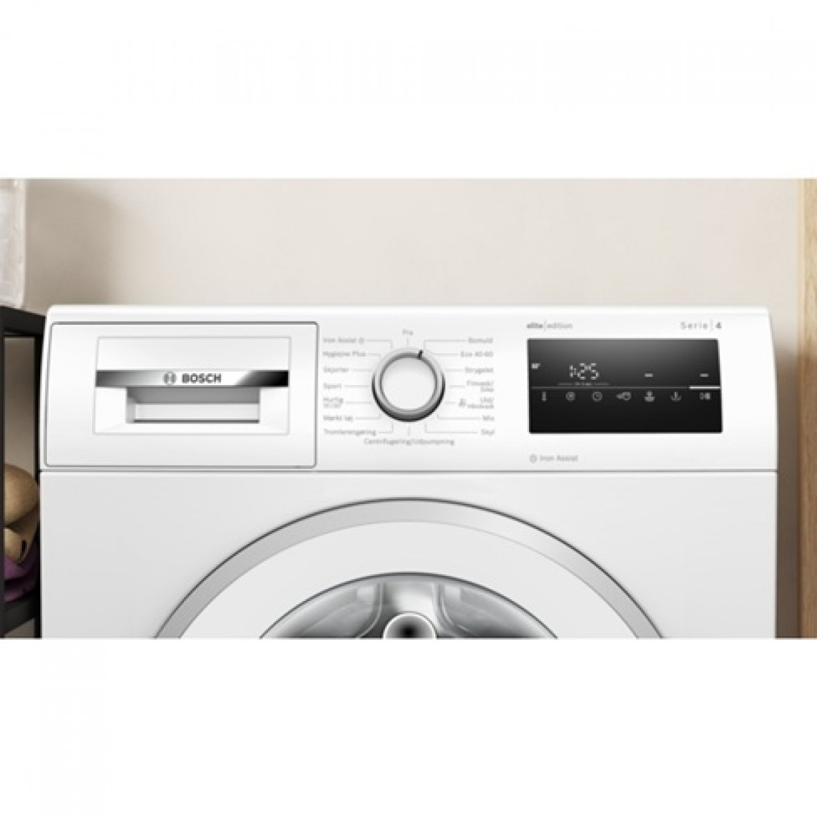 Bosch Serie 4 WAN28201DN er en moderne vaskemaskine med en kapacitet på 9 kg og en maksimal centrifugeringshastighed på 1400 omdrejninger i minuttet. Den er udstyret med den støjsvage og holdbare EcoSilence Drive-motor, som sikrer effektiv og langvarig ydeevne. Maskinen har Iron Assist-teknologi, der reducerer krøller i tøjet med op til 50 %, hvilket gør strygningen betydeligt lettere.